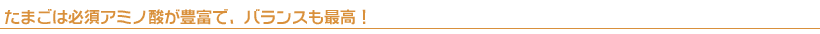 私たちのからだはアミノ酸が欠乏すると、免疫力が低下したり、疲れやすくなったり、肌荒れなどをはじめ多くの健康障害を起こします。不規則になりがちな現代人の食生活のなかで、アミノ酸パワーいっぱいのたまごは不可欠な食品といえます。 |