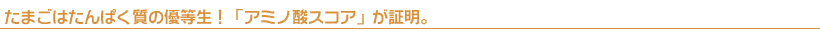 すべての必須アミノ酸が必要とされる量を満たしている場合に、アミノ酸スコアは100になります。つまり、アミノ酸スコアが100に近いほど、良質のたんぱく質であり、言うまでもなくたまごはアミノ酸スコアが100です。 |