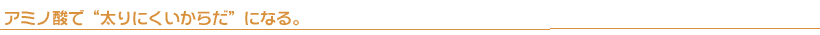 | 私たちは日常、とくに運動をしなくても、からだを維持していくためにエネルギーを消費しています。この最低限、必要なエネルギーを基礎代謝といいます。人間のからだは、活動しているときはもちろん、睡眠中もエネルギーを使い続けており、1日に消費するエネルギー量の60~70%が、この基礎代謝に使われています。基礎代謝は主に筋肉組織で行われているので、筋肉の多い人は基礎代謝量が多く、筋肉の少ない人は基礎代謝量が少ないのです。 そこで基礎代謝量の少ない人が、それを上回るエネルギー量を毎日食べ続けていると、体内に脂肪が蓄積されていきます。これが中年太りや、食事制限ダイエットによるリバウンドの原因になると考えられています。 そこで、筋肉づくりをすれば基礎代謝が上がり、エネルギー消費が多くなるため太りにくいからだになるといえます。その筋肉づくりに重要な働きをするのが、筋肉の主成分であるたんぱく質をつくるアミノ酸なのです。 |