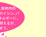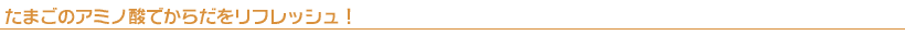 | 筋肉疲労や筋肉痛を軽減するには、イソロイシン、ロイシン、バリン、アルギニンなどのアミノ酸が効果的です。これらは、筋肉に直接届いてエネルギー源となりますが、エネルギーとなる際に乳酸を発生しないため、筋肉疲労がほとんど起こらないのです。たまごのアミノ酸が、毎日のからだの疲労をリフレッシュしてくれます。 |