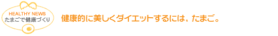 さらに、たまご1個(約60g)は、おおむね80Kcalと低カロリー。きちんと栄養をとり、体力も衰えずに美しくダイエットするには、たまごは不可欠な食品といえるでしょう。