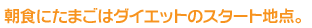 そこで、一日のスタートとなる朝食にたまご料理をとることは、肥満の予防とダイエットのスタート地点でもあるのです。