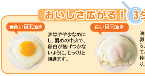 フライパンを熱し、サラダ油を敷いて、たまごを1個ずつ焼き、目玉焼きをつくる。