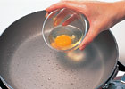 たまごを割り、フライパンに流し入れる