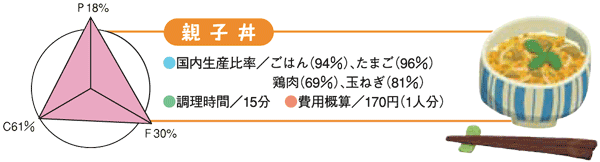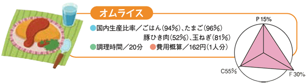 ●国内生産比率(%)の高い食品でつくる1日の献立例 |