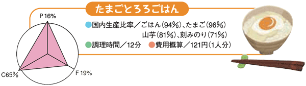 ●ごはん、たまご、野菜など多様な食物によって栄養バランスがとりやすい。
