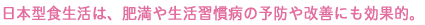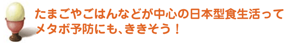 米を主食にたまごや野菜、魚、適度な肉などをとる食事は、PFCバランスに優れ、肥満や動脈硬化、生活習慣病の予防に最適です。
