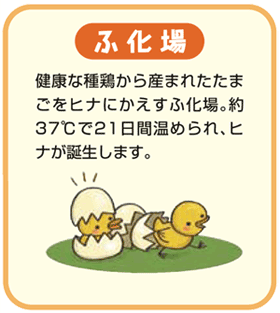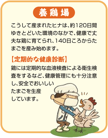 新鮮でおいしいたまごが、安全に食卓に届くように、たまごの「誕生」からの衛生管理の流れをみてみましょう。 たまごは国内生産比率が96%というだけではなく、「安全・安心な国産」の代表として衛生管理に取組んでいます。 |
