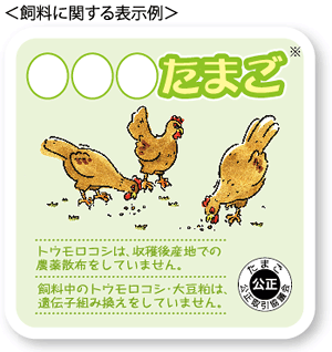 遺伝子組み換えをしていないこと、またはポストハーベスト農薬(収穫後に直接散布される農薬)を使用していないことが証明(飼料原料の証明書などの提出)される場合のみ、右記のような表示をすることができます。