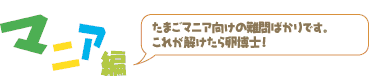 たまごに関するクイズを集めてみました。 やさしい問題から超難問まで、卵に関するいろいろなクイズが少しずつ登場します。 クイズを全部とき終わる頃には、最強の卵博士になっているはず。毎回挑戦して、たまご道を極めていってください。