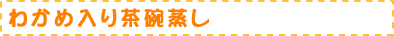 器にささみ、わかめ、三つ葉を入れて①を流し入れ、蒸気のあがった蒸し器で強火で3分、弱火で10分蒸す。