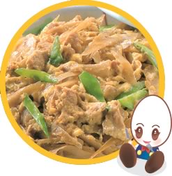 タマゴを割りほぐして(5)にまわし入れ、(3)を散らしてふたをし、タマゴが半熟状になるまで煮る。
