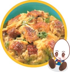 を入れて煮立て、長ねぎ、うなぎを加える。グツグツしてきたら溶きほぐしたタマゴをまわし入れ、みつばを散らす。