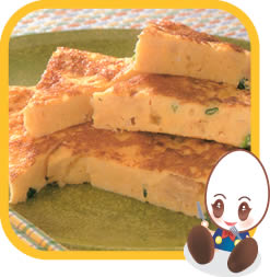 フライパンにサラダ油を熱し、(1)を流し入れて軽くかき混ぜ、ふたをして弱火で焼く。火が通ったらひっくり返し、ふたをとって裏面を軽く焼く。
