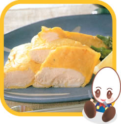 水気をふきとり、小麦粉、卵黄の順につける。フッ素樹脂加工のフライパンに入れて油を敷かずに両面を弱火で焼き、ひと口大に切る。