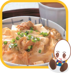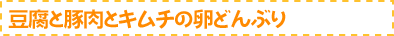 小さいフライパンに水を入れ、煮立ったら豚肉を加える。火が通ったら、豆腐、キムチの順に入れ、しょうゆを加える。