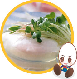 水1リットルを沸騰させ1カップの水を加えた中にタマゴを入れ、蓋をして8分置く。取り出したら器にあける。