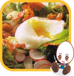 オリーブ油大2で 1 を炒める。ベーコンがカリッとしたら 3 にかけ、塩、こしょうで味を調えレモンを添える。 |