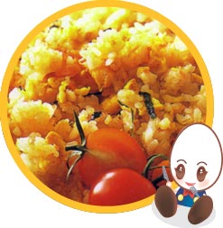 1 のフライパンをきれいにして、あらためてサラダ油 大2を熱し、Aを炒める。ご飯と鮭を加えてご飯がほぐれるまで炒めたら 1 を加えてさらに炒める。ごはんがパラリとしてきたら B を加えて味を調え、しそを加えて混ぜ皿に盛る。