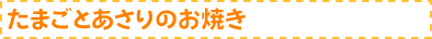 ボールにたまご(2個)を割りほぐし、プチトマト(2個)のみじん切り、万能ねぎ(適宜)の小口切り、あさりのむき身(50g、水煮缶でもよい)、小麦粉(大さじ1)を加え、軽く塩・こしょうし、全部混ぜる。