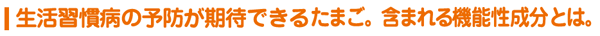 板倉 生活習慣病などの予防・改善効果がある食品を機能性食品といいます。 レシチン、カロチノイドなどの機能性成分を含むたまごも機能性食品の一つです。 レシチンは、リン脂質という脂肪の一種で、血管壁に入り込んで動脈硬化を促進するLDLコレステロール(悪玉コレステロール)を溶かす働きがあります。その結果、体内でのコレステロールの蓄積を押さえ、LDLコレステロール値を低下させ、動脈硬化を予防する効果が期待できます。 また、レシチンの構成成分であるコリンは、神経伝達物質「アセチルコリン」をつくります。アセチルコリンには、脳の記憶や情報を伝達する働きがあり、日常の脳の活性化には欠かせない物質です。またコリンは、認知症の予防と改善効果があることから、注目を集めています。 カロチノイドは、卵黄のあの鮮やかな黄色を出す脂溶性の色素です。からだを酸化させ、がんなどの生活習慣病の原因となる活性酸素を除去する強い抗酸化作用があり、動脈硬化や脂質異常症の予防や改善にも優れた働きをします。 生活習慣病のリスクを軽減するためにも、たまごのもつ機能性を意識した食生活を実践してほしいと思います。